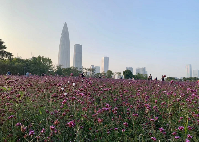 四月的深圳灣公園繁花似錦,來這里漫步打卡的游人絡繹不絕;向后望去,后海深圳灣超級總部基地塔吊林立,高聳入云的現代建筑如春筍般拔地而起。這條沿海岸線綿延十余公里的綠化帶,把深圳隔離成兩個天地:一邊是悠閑舒適的慢生活,一邊是如火如荼的快節奏,形成鮮明對比,也體現著深圳這座城市的獨特氣質。