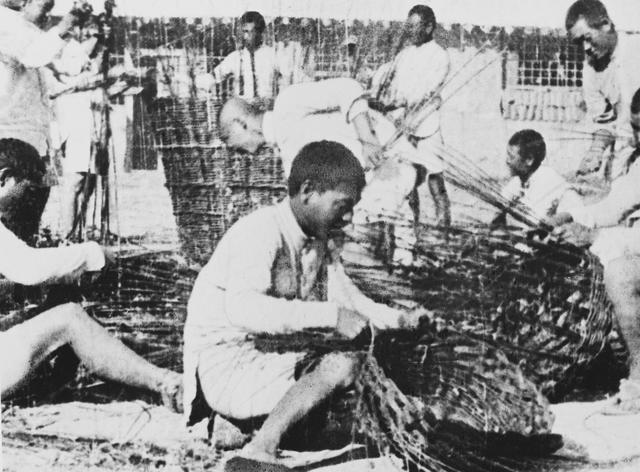 1942年,開發(fā)南泥灣的戰(zhàn)士們用柳條編筐,克服物資缺乏帶來的種種困難。(新華社資料照片)