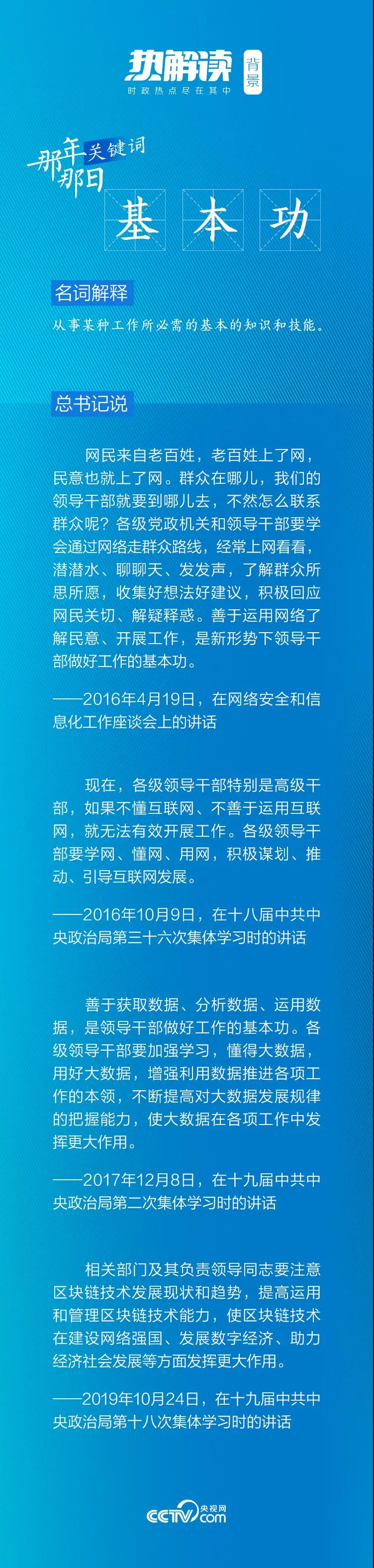 本文關(guān)注到,這次重要講話中所提的“基本功”,之后總書(shū)記又多次提及,并反復(fù)強(qiáng)調(diào)互聯(lián)網(wǎng)時(shí)代領(lǐng)導(dǎo)干部“運(yùn)用網(wǎng)絡(luò)”的重要意義。