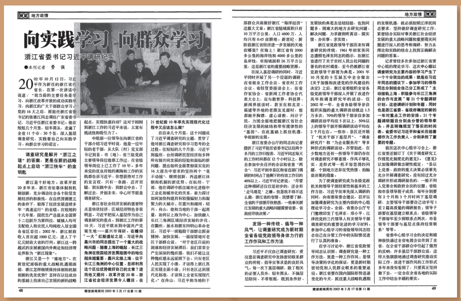 這篇專訪刊發后不久,2002年10月,習近平同志調到浙江省工作。