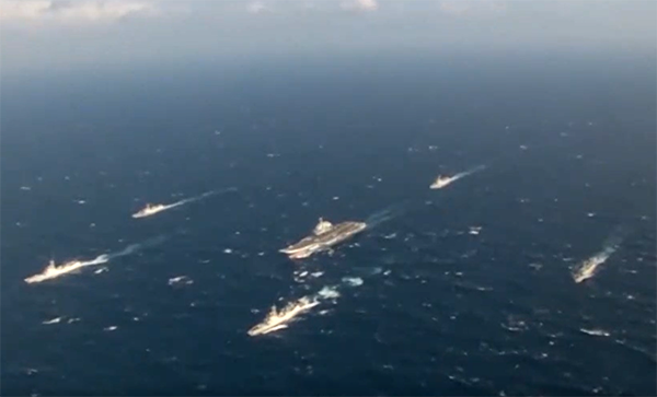 畫面曝光!遼寧艦航母編隊在臺灣周邊海域訓練