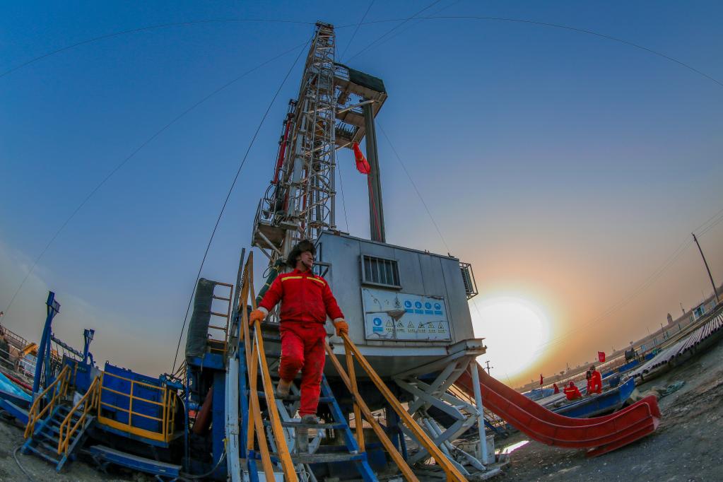 夕陽下的大慶油田鉆井施工現(xiàn)場。(采訪對(duì)象提供)