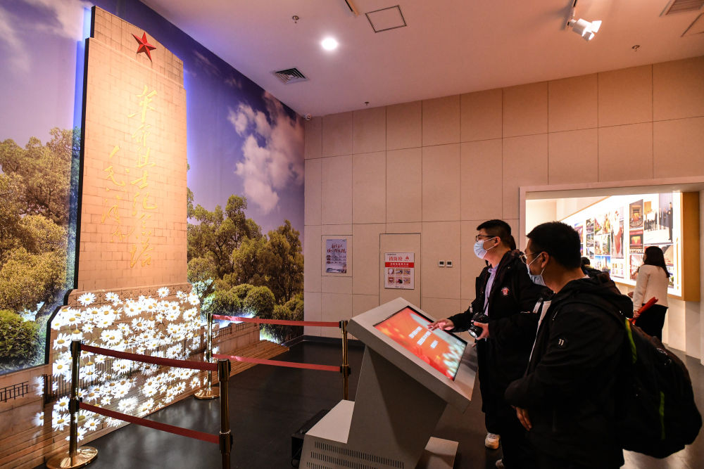 ↑2021年4月2日,參觀者在山東濟南戰(zhàn)役紀念館內學習黨史、緬懷先烈。