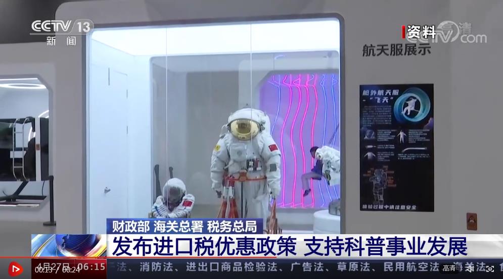 央視網消息:財政部、海關總署、稅務總局日前發布進口稅收優惠政策,支持科普事業發展。