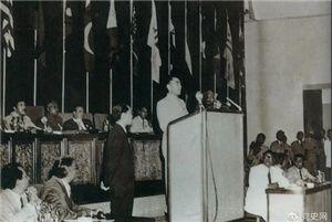 1955年4月18日,亞非會(huì)議在萬(wàn)隆開(kāi)幕。圖為19日周恩來(lái)在會(huì)議上發(fā)言。