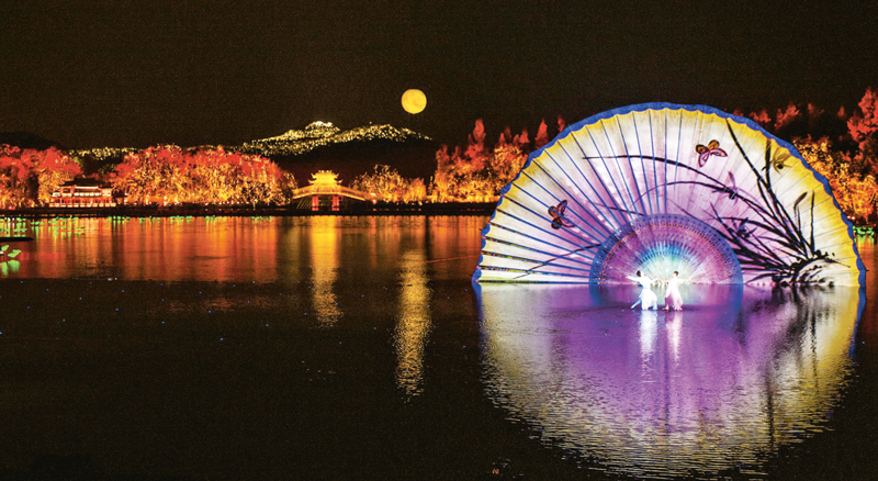 圖為2016年9月4日,在西湖湖面舉行的G20杭州峰會文藝演出《最憶是杭州》。這場藝術(shù)盛宴,向世界傳達(dá)出融合共處的美好愿景,傳遞著中國的文化自信。 視覺中國供圖