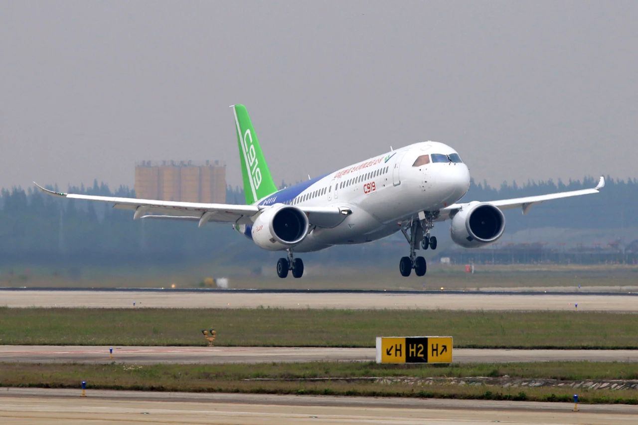 三年后,中國(guó)自主研制的大型噴氣式客機(jī)C919成功首飛。