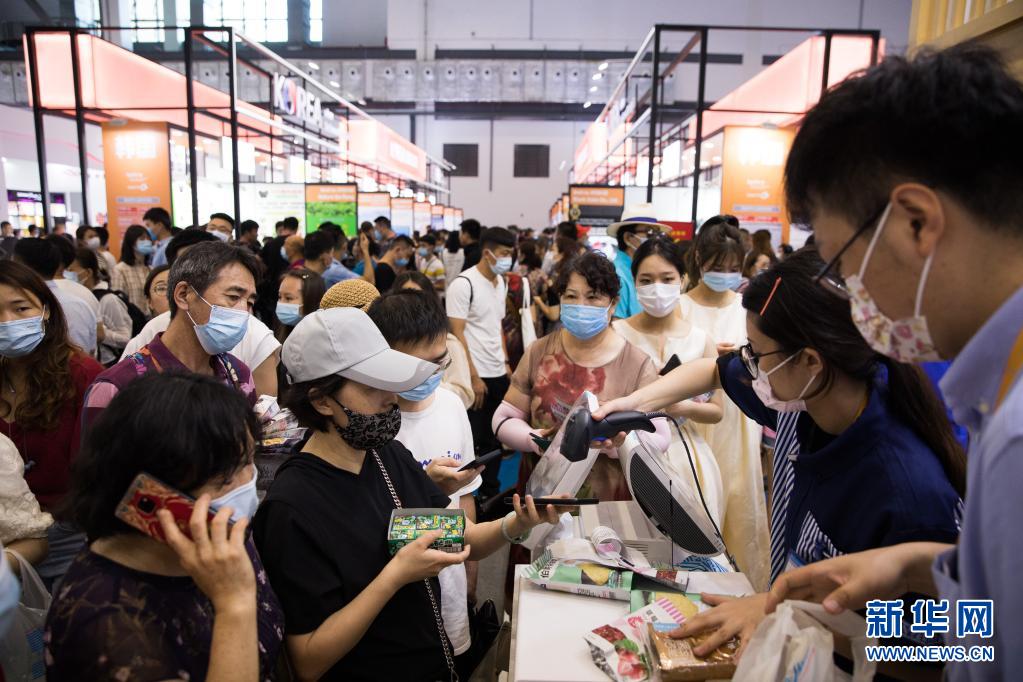 當(dāng)日,首屆中國國際消費(fèi)品博覽會(huì)迎來公眾開放日,不少市民前來觀看展覽、選購商品。