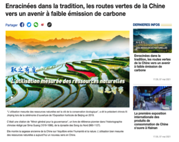 CGTN官網發布英語特稿《經典中的智慧:中國走向低碳未來的綠色道路》,在解讀典故的同時,介紹了中國政府在綠色發展領域所采取的積極舉措以及一系列成就。目前官網相關報道已經獲得了來自美國、英國、加拿大、意大利、澳大利亞、印度、墨西哥、古巴、秘魯、西班牙、阿根廷等國家和地區的819家海外主流網絡媒體轉載。代表轉載媒體有美聯社、雅虎財經、市場觀察、晨星網、意大利克羅諾斯通訊社、國際金融時報、澳聯社、印度今日商業、印度新德里時報、古巴經濟學家報等,累計觸達海外受眾達5.2億人次。