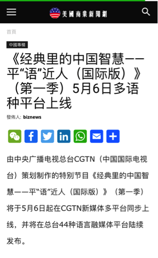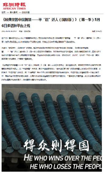 《經典里的中國智慧——平“語”近人(國際版)》(第一季)一上線即引發多家華文媒體高度關注。美國商業新聞網、北歐時報網、日本華商網、歐僑網、葡新報、華人頭條、西非在線、非洲時報等網站,以及香港《文匯報》、香港明珠傳媒、香港立場傳媒、香港觀察、粵澳傳媒、澳門眀言傳媒、大澳熱點等境外華文媒體轉引轉載相關報道。