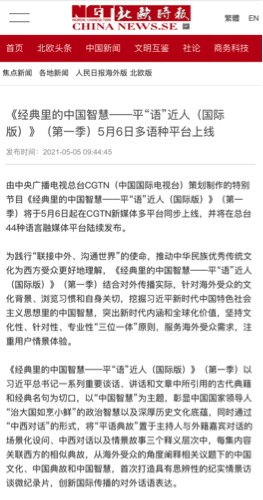 總臺44種語言融媒體編譯播發了《經典里的中國智慧——平“語”近人(國際版)》(第一季)第一集,通過臉書、優兔、推特等海外社交媒體廣泛傳播。