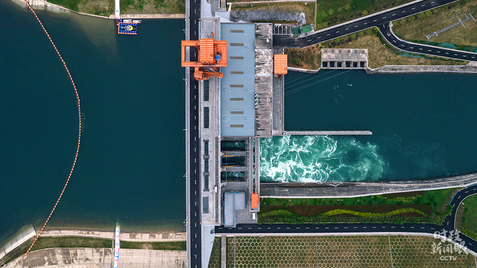△陶岔渠首水利樞紐工程大壩長265米,引水閘分3孔、閘總寬31米。(總臺國廣記者李晉拍攝)