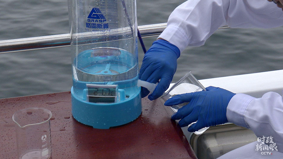 △這是考察當天,現場從丹江口水庫取出的水樣。(總臺央視記者李錚拍攝)