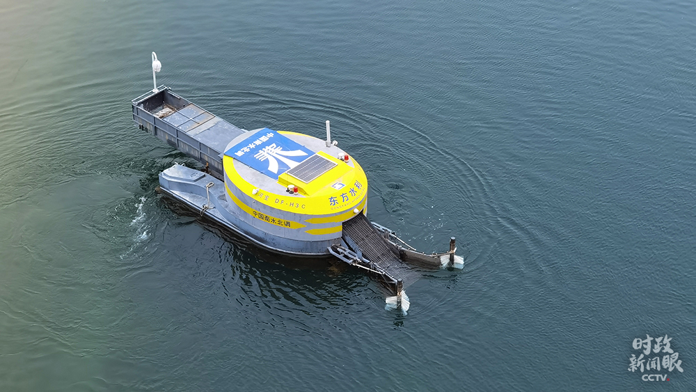△形似小船的清漂機器人自帶攝像頭,能自動尋找水面垃圾。(總臺央視記者馬立飛拍攝)