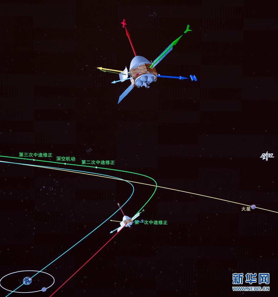 ——軌道修正,讓天問飛得更穩。天問一號先后完成了四次中途軌道修正,對3000N發動機及120N、25N推力器的在軌性能、工作模式進行了全面驗證。