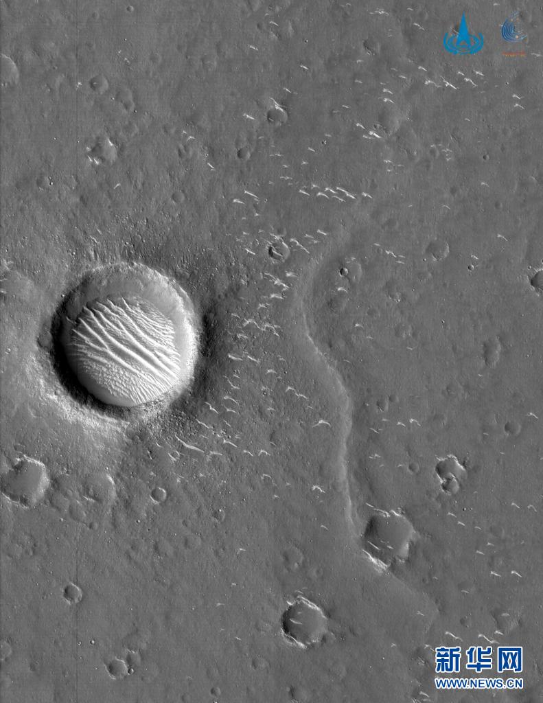 ——首拍火星,成功獲取中國首幅近火圖像。2021年2月5日,國家航天局發布了天問一號在距離火星約220萬公里處,獲取的首幅火星圖像。本次成像采用環繞器高分辨率相機的黑白成像模式。