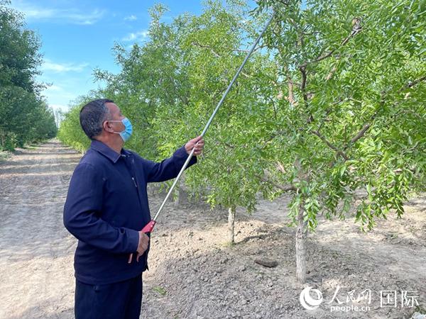 央塔克鄉(xiāng)棗農(nóng)修剪棗樹枝葉。人民網(wǎng) 張榮攝