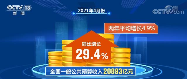數據顯示,今年4月份,全國一般公共預算收入20893億元,同比增長29.4%,兩年平均增長4.9%,主要是一季度企業利潤較快增長帶動按季預繳的企業所得稅在4月份入庫增加,反映了經濟持續穩定恢復。1—4月累計全國一般公共預算收入78008億元,同比增長25.5%,兩年平均增長3.6%。