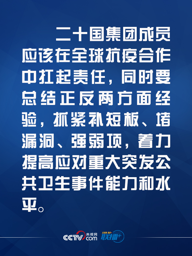 ●要提高監測預警和應急反應能力、重大疫情救治能力、應急物資儲備和保障能力、打擊虛假信息能力、向發展中國家提供支持能力。