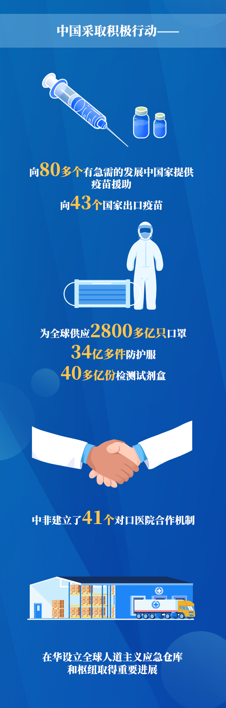 一年來,疫情反復(fù),病毒變異,形勢(shì)依然復(fù)雜嚴(yán)峻,國(guó)際社會(huì)急切期待更多的信心、希望和合作。習(xí)近平主席心系蒼生,胸懷世界,領(lǐng)導(dǎo)開展新中國(guó)歷史上規(guī)模最大的全球人道行動(dòng),為全球抗疫貢獻(xiàn)中國(guó)智慧和力量,用實(shí)際行動(dòng)踐行人類衛(wèi)生健康共同體理念,得到國(guó)際社會(huì)高度肯定和積極響應(yīng)。