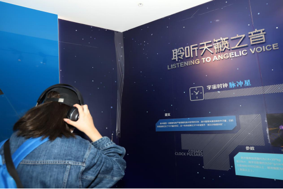 在平塘國際天文體驗館中,游客聆聽脈沖星的聲音