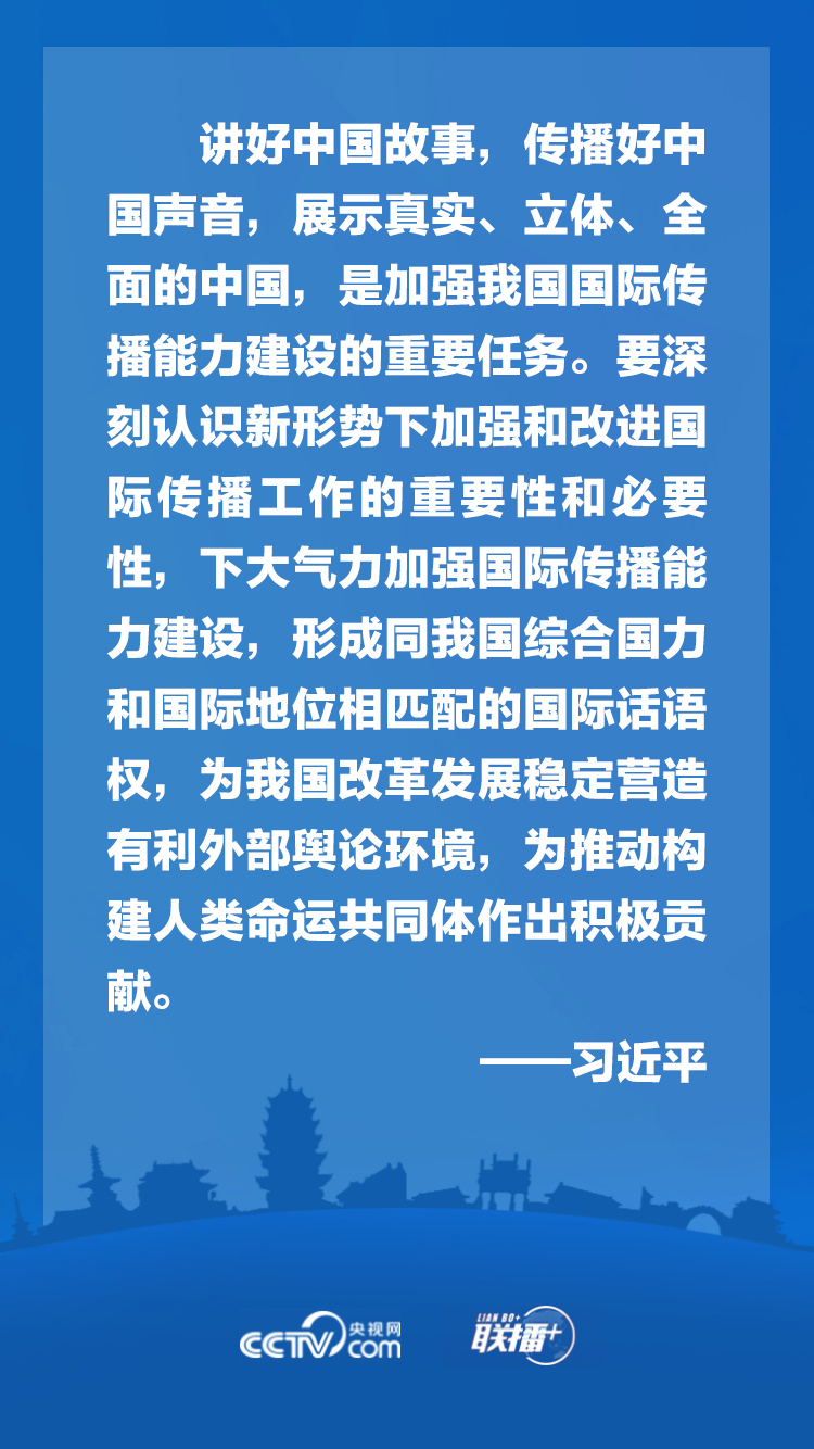黨的十八大以來,我國大力推動國際傳播守正創新,理順內宣外宣體制,打造具有國際影響力的媒體集群,積極推動中華文化走出去,有效開展國際輿論引導和輿論斗爭,初步構建起多主體、立體式的大外宣格局,國際話語權和影響力顯著提升。面對新的形勢和任務,應如何加強我國國際傳播能力建設?央視網《聯播+》特梳理總書記講話要點,與您一起學習領悟。