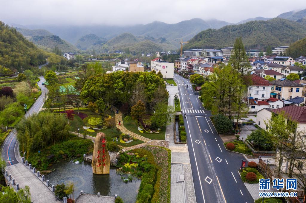 空中俯瞰浙江省安吉縣天荒坪鎮余村(2020年3月31日攝,無人機照片)。新華社記者 徐昱 攝