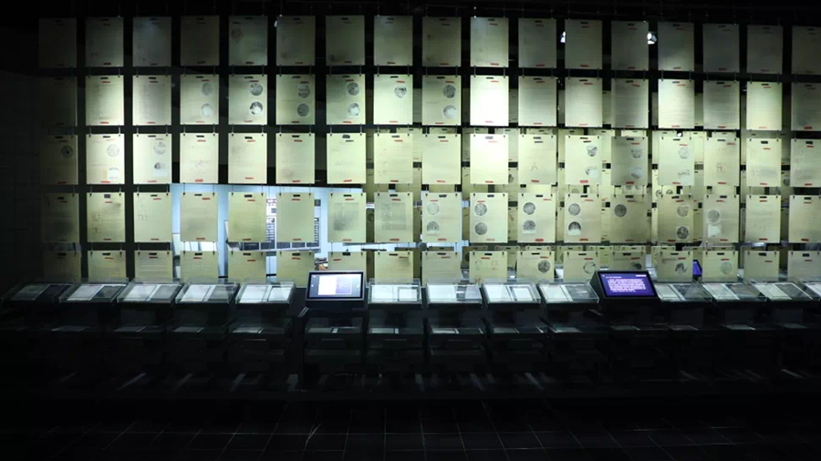 侵華日軍第七三一部隊(duì)罪證陳列館人體實(shí)驗(yàn)展區(qū),一張張英文人體實(shí)驗(yàn)報(bào)告書(shū)復(fù)印件,連成一面墻。新華社記者 何山 攝