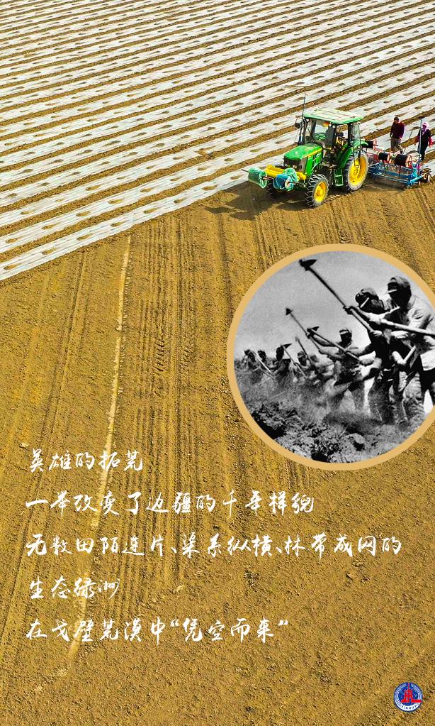 英雄的部隊,就此扎根大漠,整編為新疆生產建設兵團農一師(后更名為第一師)。而英雄的拓荒,一舉改變了邊疆的千年樣貌。無數田陌連片、渠系縱橫、林帶成網的生態綠洲,在戈壁荒漠中“憑空而來”。