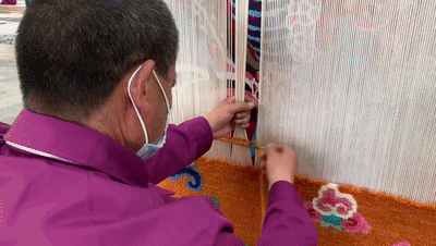 △“西寧大白毛”纖維長、彈性好、有光澤,織出的地毯質地柔軟、堅韌耐磨。(總臺央視記者范凱拍攝)