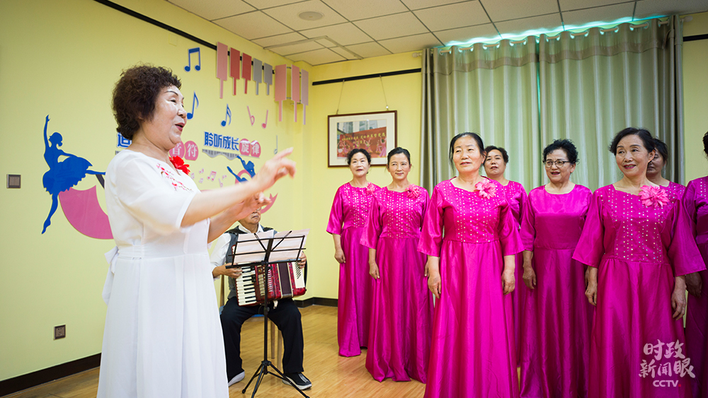 △社區合唱團正在排練,總指揮是66歲的社區居民王紅梅。(總臺央視記者彭漢明拍攝)