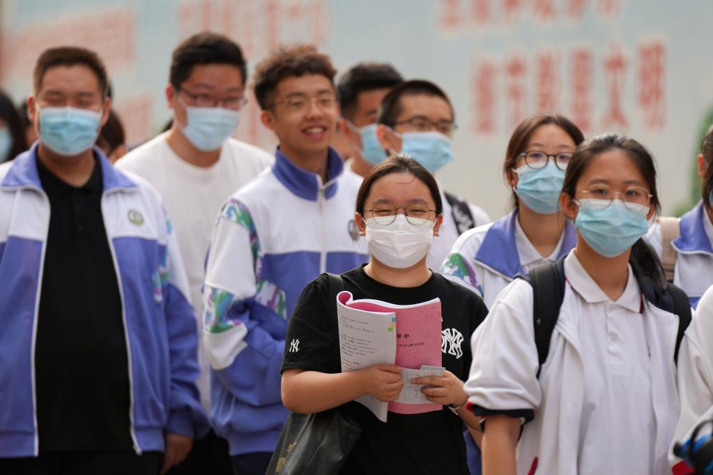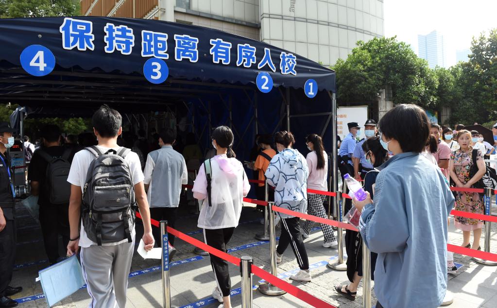 在安徽省合肥市五十中學(xué)天鵝湖校區(qū)考點,考生們有序進(jìn)入考場。新華社記者 周牧 攝