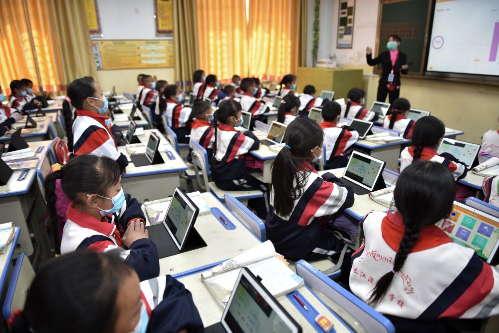 長江源村里建起“長江源民族學校”,各類設施一應俱全。學校不僅開展雙語教學,還利用“智慧教育”平臺共享優質教學資源。教育上的大變化,預示著孩子們的美好未來。