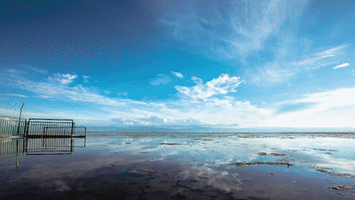 △白晝和日落時(shí)分的青海湖仙女灣(總臺(tái)央視記者柳成拍攝)