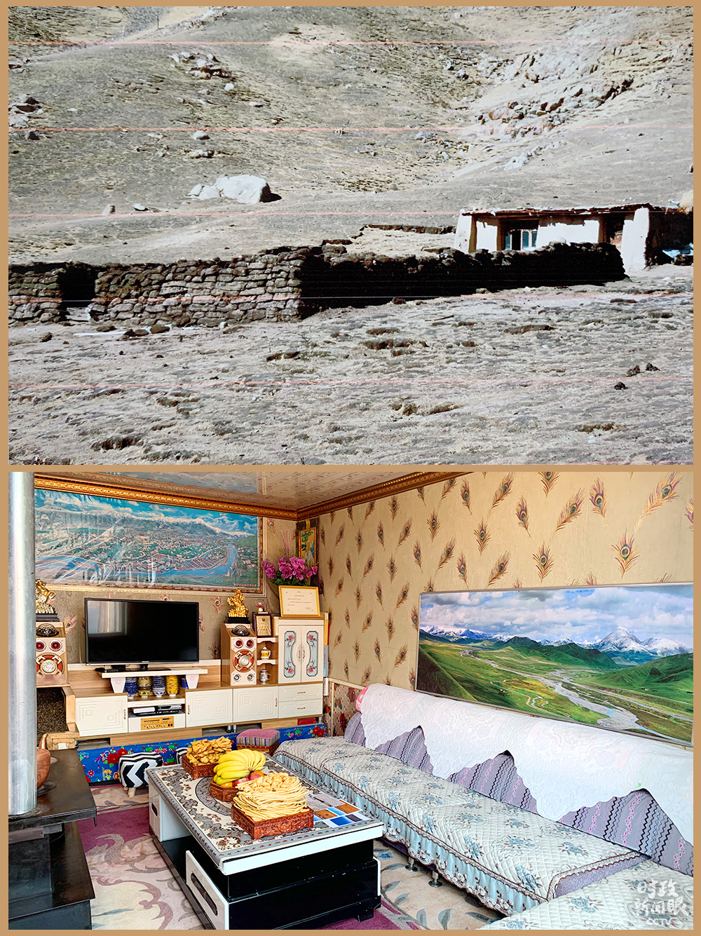 △索南才讓一家新舊房屋對(duì)比,舊居拍攝于2014年前。(總臺(tái)央視記者邢彬、段德文拍攝)