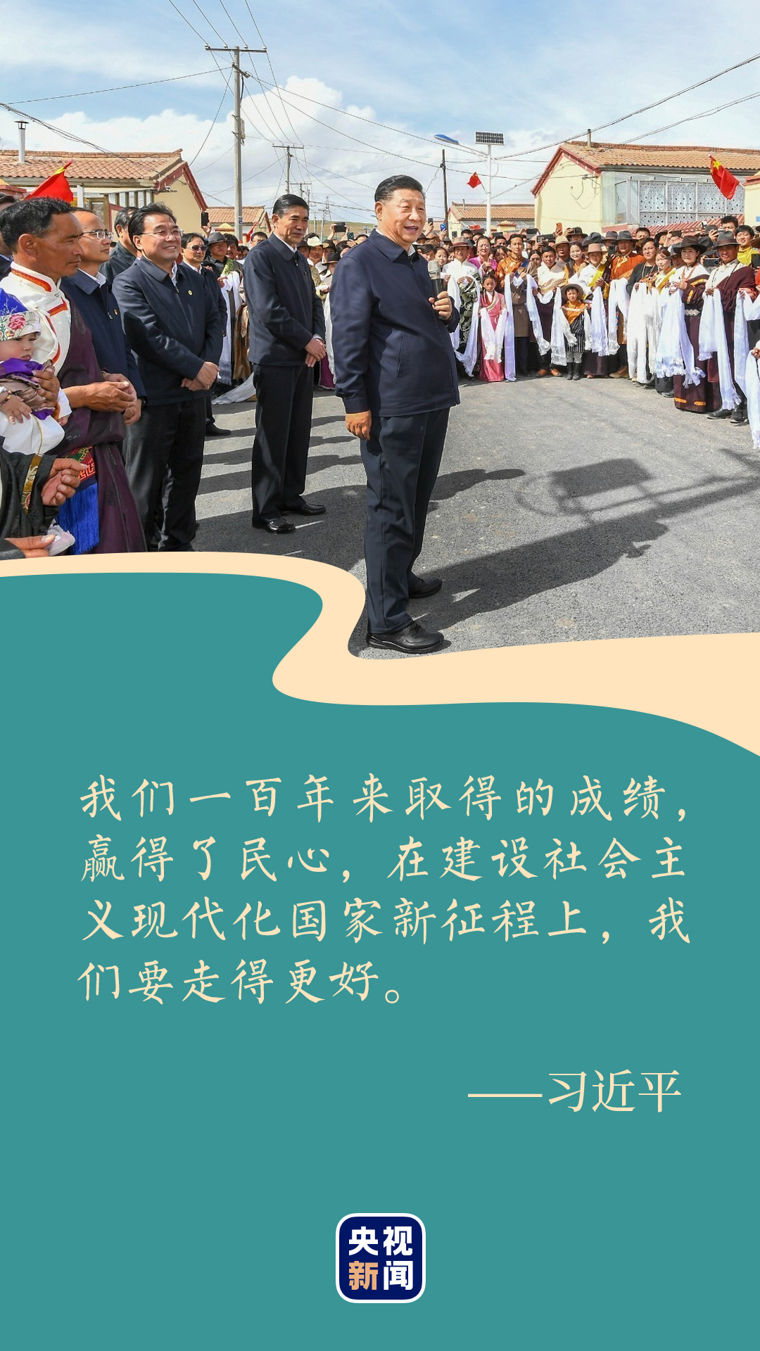 總書記走進牧民索南才讓家中,看望慰問藏族群眾。索南才讓說,牧民生活好,全靠黨的政策好,衷心感謝黨、衷心感謝總書記。習近平深情地說,我們黨成立一百年了,為什么老百姓衷心擁護中國共產黨?因為我們黨始終全心全意為人民服務、為各民族謀幸福。