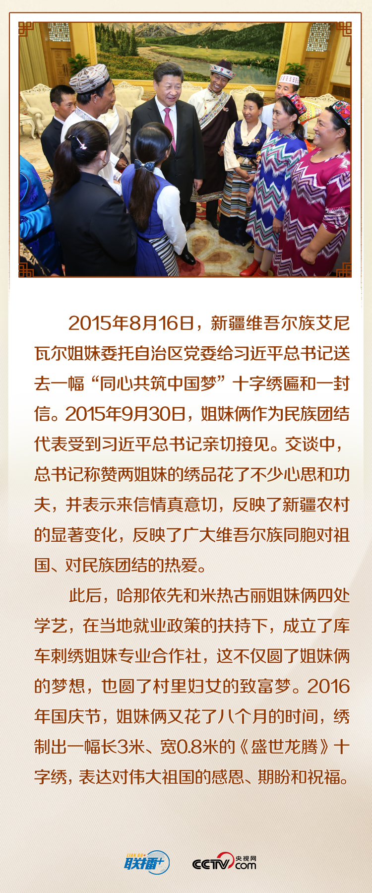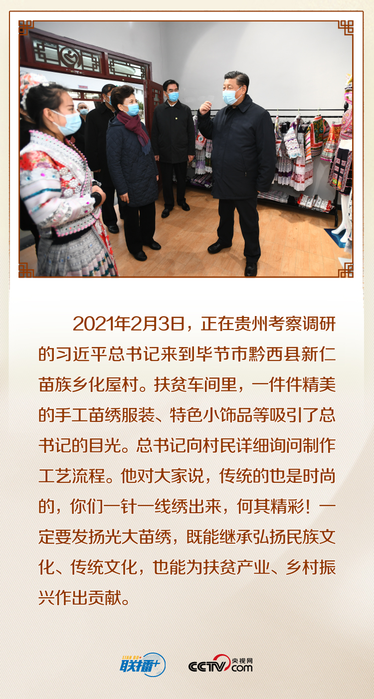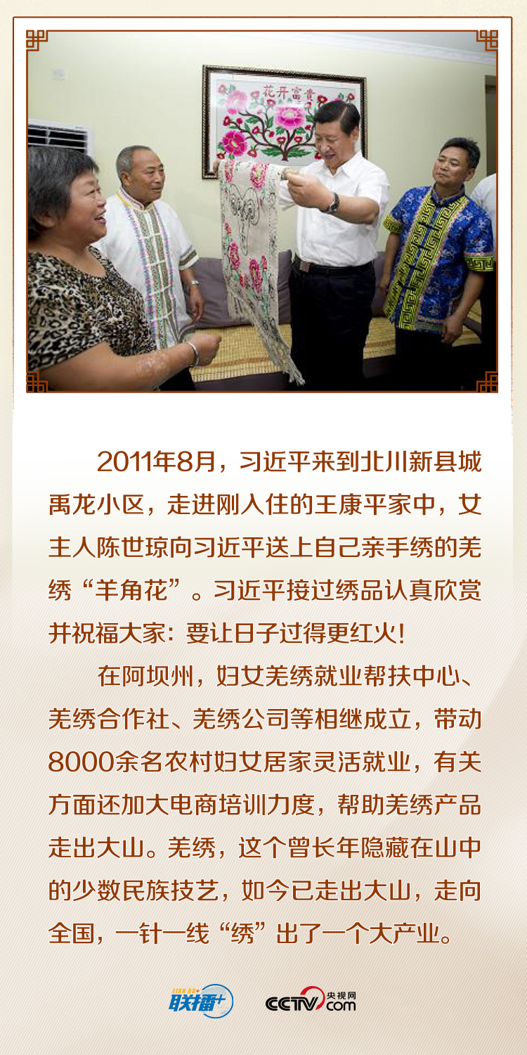 央視網(wǎng)《聯(lián)播+》特進行梳理,帶您跟隨總書記一起感受一針一線“繡”出的美好生活和人們用雙手創(chuàng)造的幸福路。