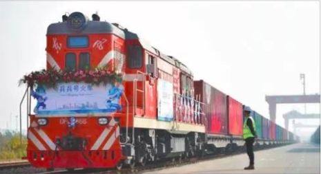 2018年,中歐(武漢)班列軍運會主題列車“兵兵號”從武漢臨空港經濟技術開發區(東西湖區)中鐵聯集武漢中心站發車,沿著“絲路”大通道,駛向德國漢堡。圖片來源:人民日報