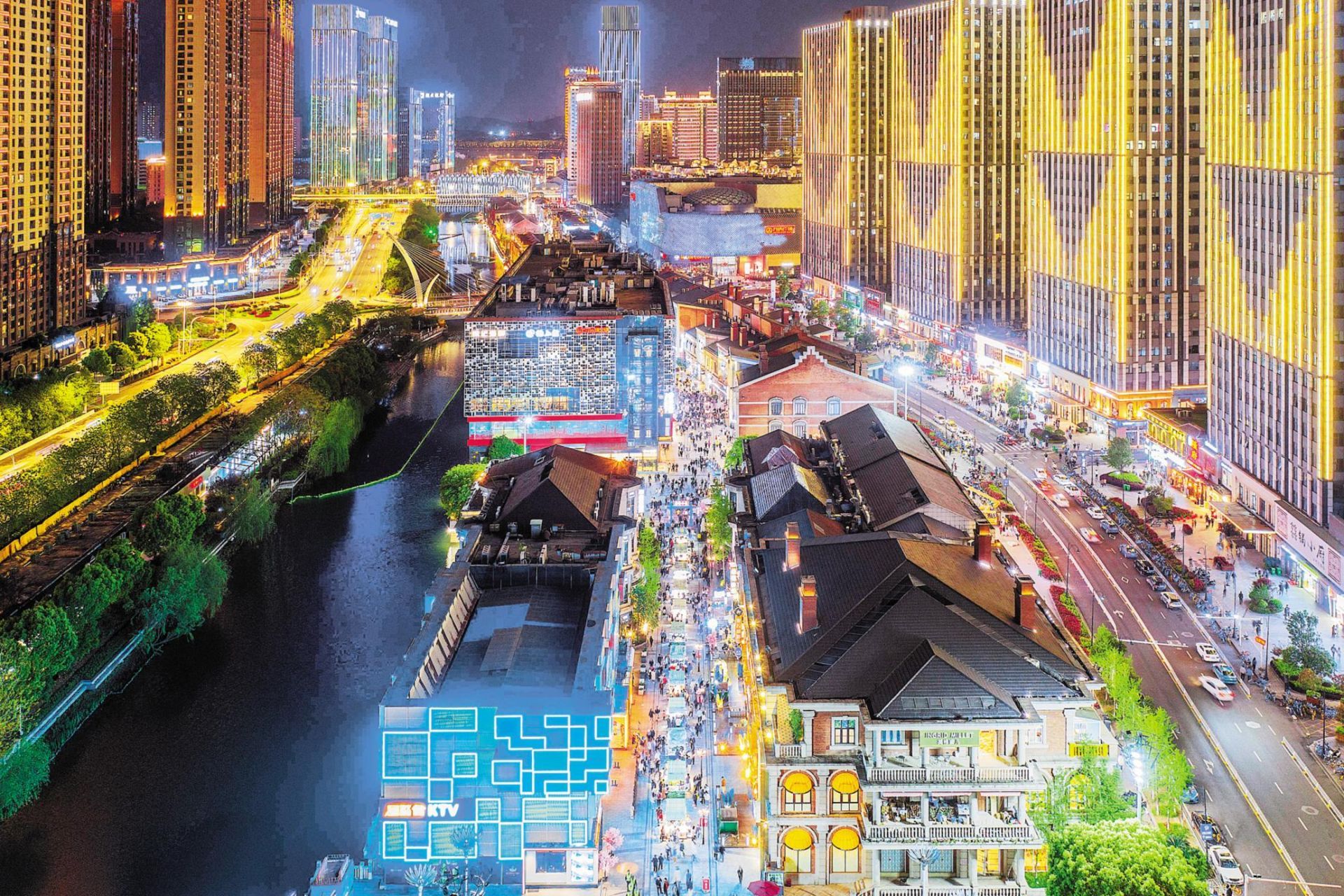 2021年4月4日夜,漢街人頭攢動,市民游客人流如潮,武漢的商業旅游快速恢復。 湖北日報全媒記者 梅濤 攝