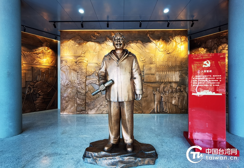 李保國先進事跡展覽館前廳安放的李保國同志的銅像。(中國臺灣網 張亞靜 攝)