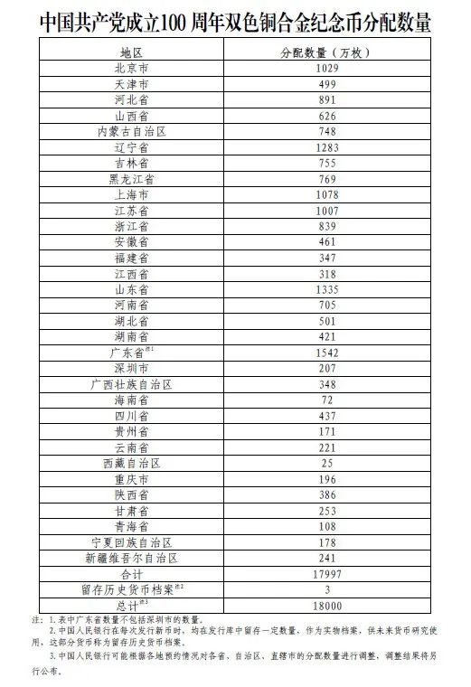 2021年8月25日前,中國人民銀行分支機構將向社會公告當地中國共產黨成立100周年雙色銅合金紀念幣兩批次的分配數量等信息;預約承辦銀行將在其官方網站公布中國共產黨成立100周年雙色銅合金紀念幣兩批次預約兌換網點和每個網點的可預約數量等信息。