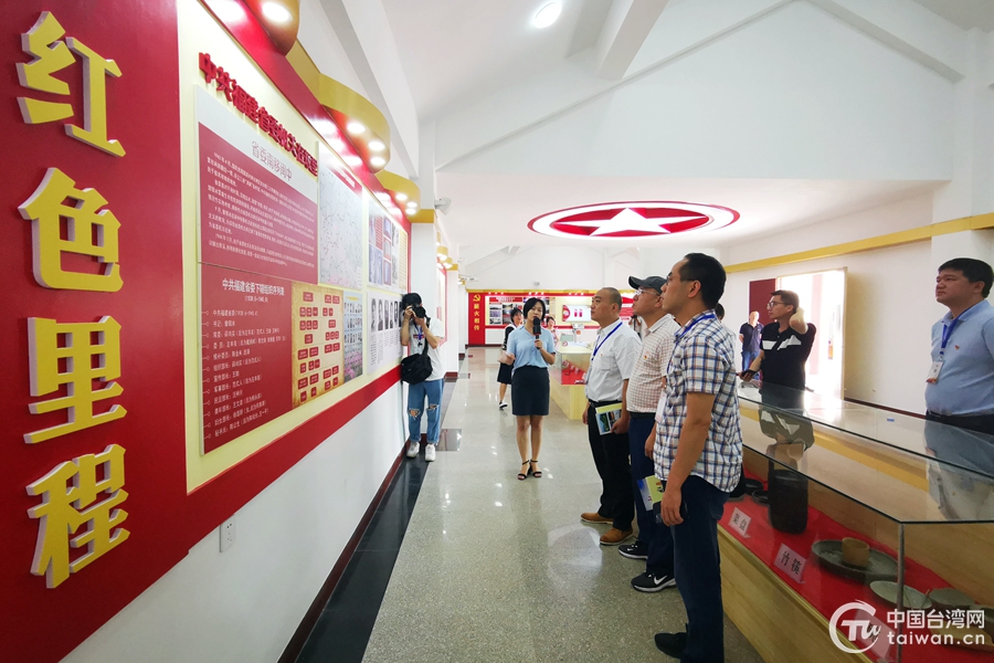 采訪團(tuán)在中共福建省委舊址陳列館內(nèi)聆聽講解。(中國臺灣網(wǎng) 尹賽楠 攝)