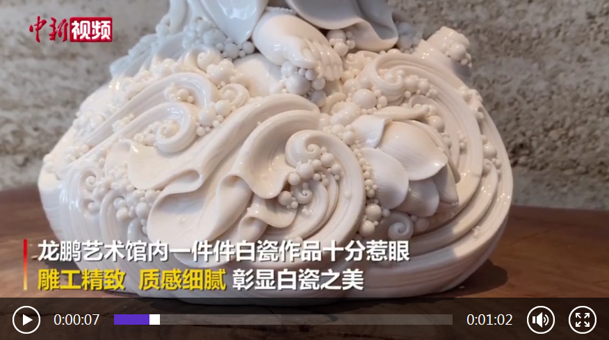 眼前的一件件白瓷作品十分惹眼,精工巧藝地雕刻,彰顯了白瓷之美。刻畫出的人物形象素雅細(xì)膩、惟妙惟肖,層次感十足。除了白色的茶杯、茶壺等日常用品外,不少德化陶瓷擺件也十分賞心悅目。這是記者6月20日在位于福建省德化縣的龍鵬藝術(shù)館見到的一幕。
