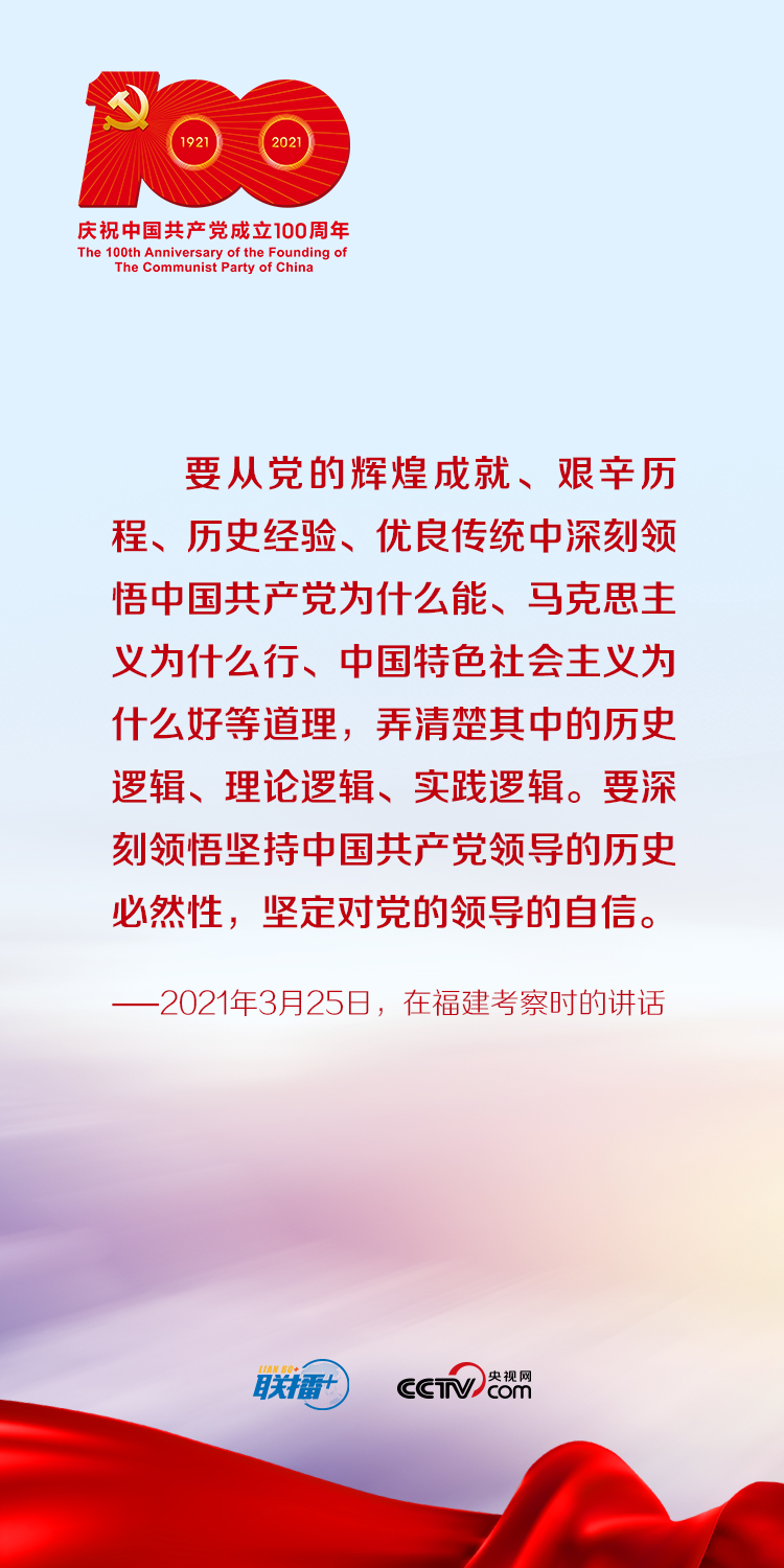 今年是中國共產(chǎn)黨成立100周年。央視網(wǎng)《聯(lián)播+》特梳理總書記關(guān)于知史愛黨的重要論述,與您一起堅(jiān)定理想信念,不斷增強(qiáng)守初心、擔(dān)使命的思想自覺和行動(dòng)自覺。