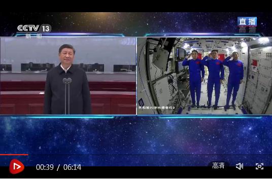 6月23日,中共中央總書記、國家主席、中央軍委主席習近平來到北京航天飛行控制中心,與神舟十二號航天員通話。