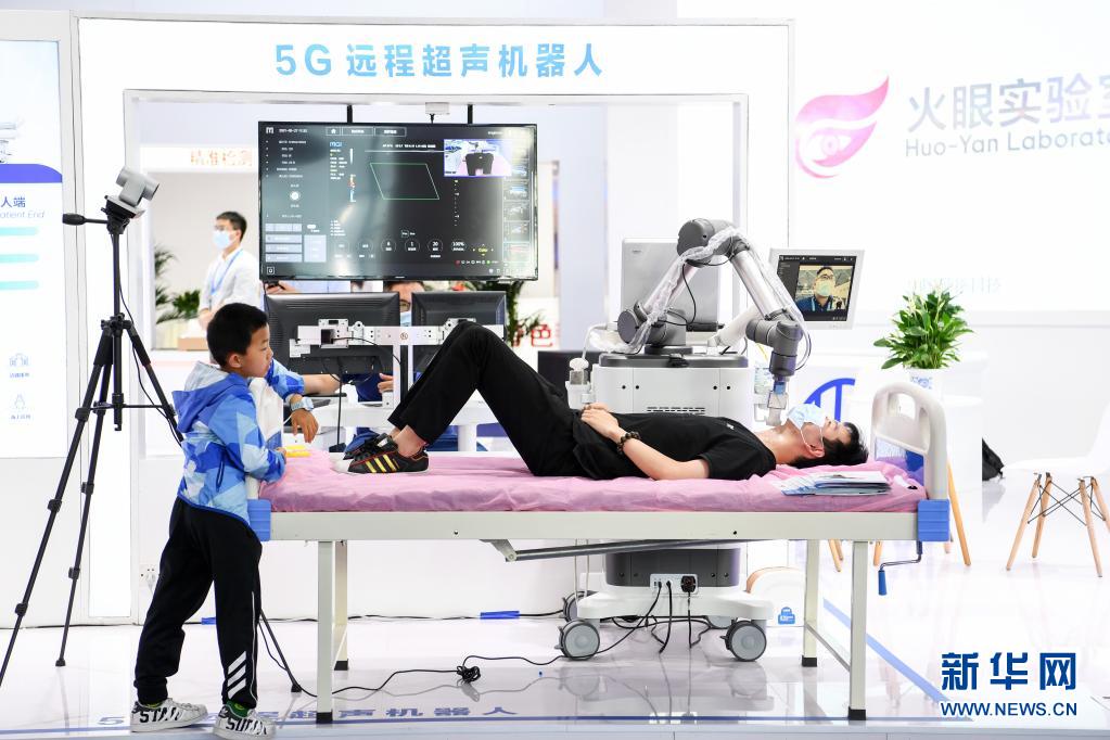 5月27日,參會者在“數博會”上體驗5G遠程超聲機器人診療。新華社記者 楊文斌 攝