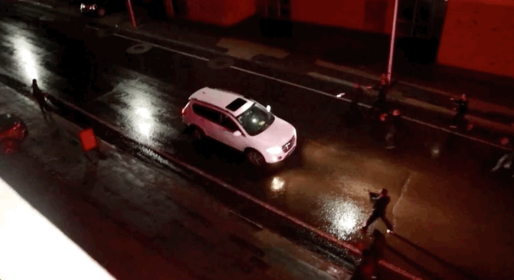 視頻中嫌疑汽車突然啟動(dòng)沖撞