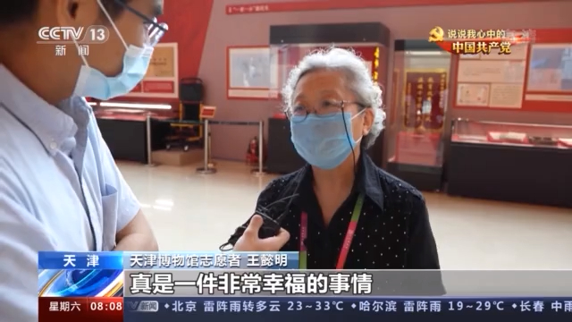 天津博物館志愿者 王懿明:我們這個(gè)年齡可以說(shuō),用我們過(guò)去的話叫生在紅旗下,長(zhǎng)在紅旗下,也經(jīng)歷過(guò)這么多的事情,真的感到生在中國(guó)真是一件非常幸福的事情。你從剛才咱北京牌第一臺(tái)的電視機(jī),到現(xiàn)在家里頭一間屋、兩間屋子、三間屋子里都有電視機(jī),這是一個(gè)多大的變化。我從60歲起跟老伴周游了很多很多個(gè)國(guó)家,走過(guò)了很多很多個(gè)地方,越走我越感覺(jué)中國(guó)偉大,我不會(huì)用語(yǔ)言來(lái)形容,但是咱們國(guó)家的制度,咱們國(guó)家對(duì)人民的熱愛(ài),共產(chǎn)黨對(duì)人民的熱愛(ài),對(duì)人民的關(guān)懷,就是歌里唱的他為人民謀幸福。老百姓追求的是什么,老百姓追求的就是幸福,共產(chǎn)黨就是為人民謀幸福的。我希望咱們的國(guó)家越來(lái)越好,也盼望著人民的生活越來(lái)越好,好上加好,我們?yōu)槭裁床痪S護(hù)好我們的江山。我們還繼續(xù)過(guò)好我們的生活,然后我們繼續(xù)跟著共產(chǎn)黨前進(jìn)。