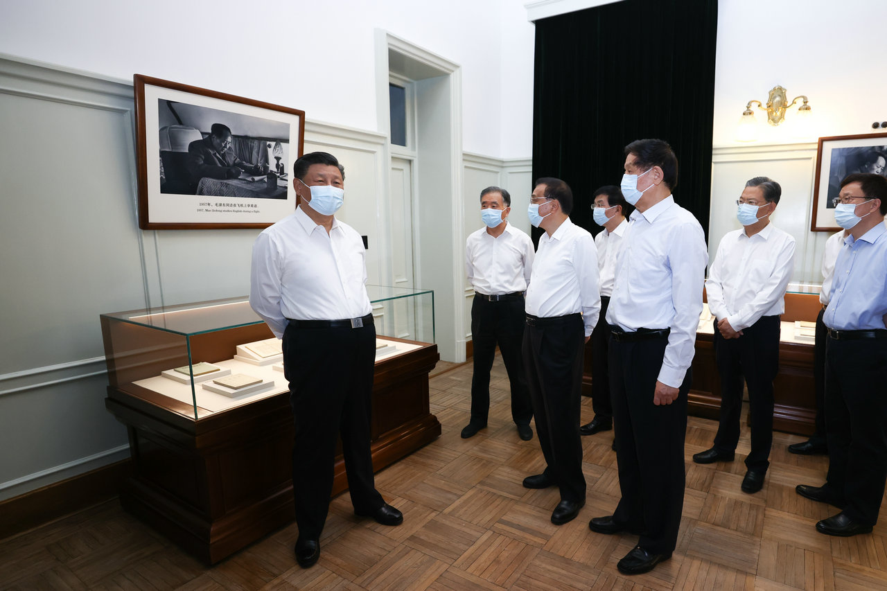 25日下午,習近平帶領中央政治局同志來到北大紅樓,參觀“光輝偉業 紅色序章——北大紅樓與中國共產黨早期北京革命活動主題展”,重溫李大釗、陳獨秀等開展革命活動、推動馬克思主義在中國早期傳播、醞釀和籌建中國共產黨等革命歷史。展廳內,一張張圖片、一件件文物,全面展現了那個時期的光輝歷史。習近平不時停下腳步,詢問相關細節。他指出,北大是新文化運動的中心和五四運動的策源地,最早在我國傳播馬克思主義思想,也是我們黨在北京早期革命活動的歷史見證地,在建黨過程中具有重要地位。要加強紅色資源保護和利用,尊重歷史事實,準確評價歷史,正確學史用史。