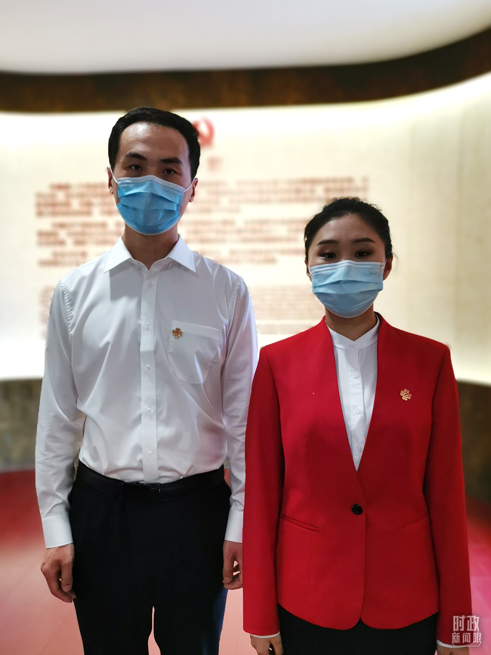 △“光輝偉業(yè) 紅色序章——北大紅樓與中國共產(chǎn)黨早期北京革命活動主題展”講解員朱寧、謝尹楠。(總臺央視記者李曉周拍攝)